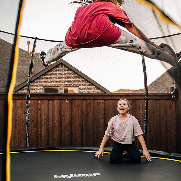 Dieser Sommer wurde gerade ein wenig lustiger! Die Mädchen haben dieses tolle Trampolin von LeJump bekommen. Sie lieben es sehr und können all ihre Energie loswerden.